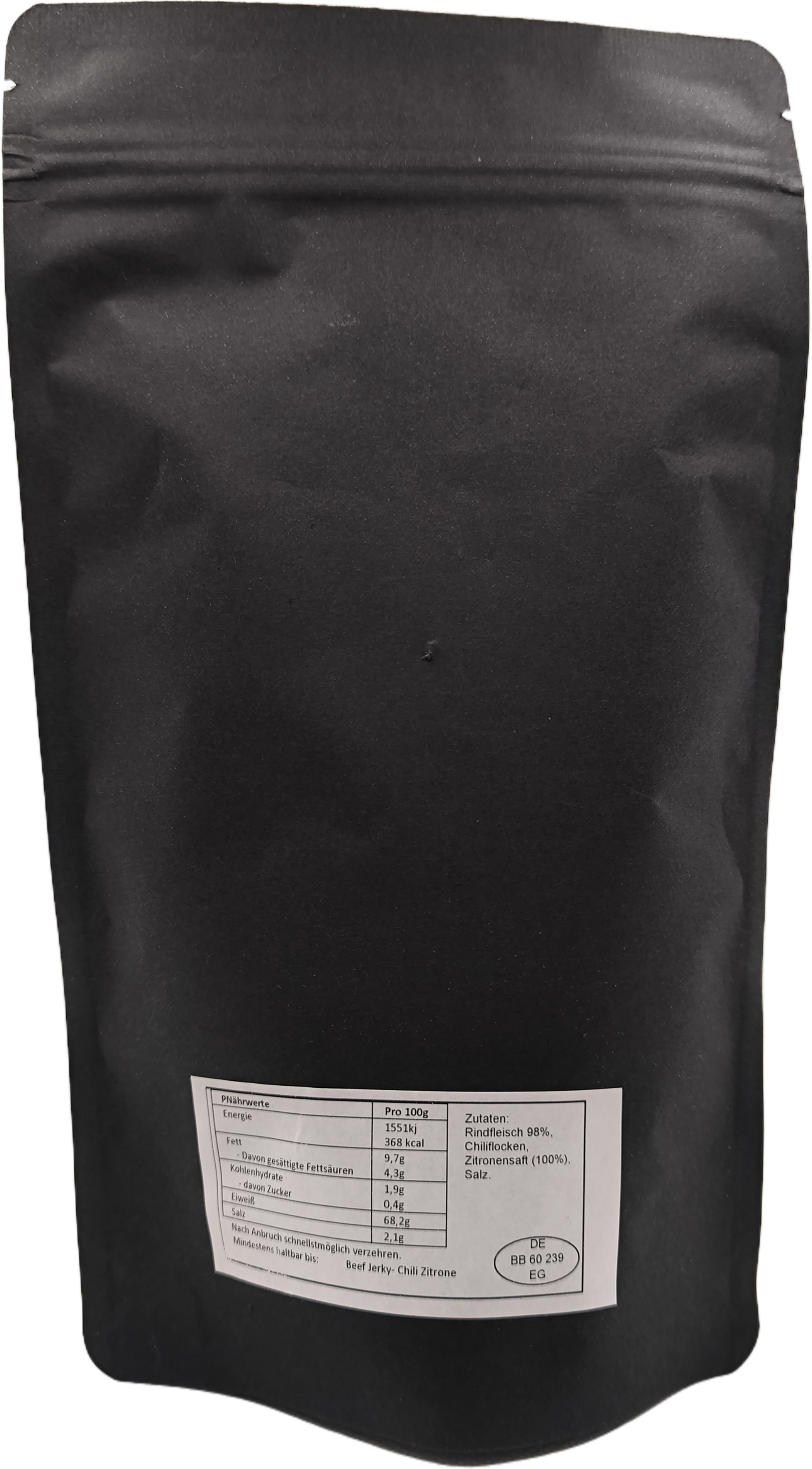 Unser Jerky wird aus deutschem Weiderind und bestem Hühnerfleisch hergestellt. Die hohe Qualität des Fleisches wird mit erlesenen Gewürzen untermalt, um ein natürliches und geschmackvolles Jerky zu kreieren. Bei der Herstellung wird komplett auf künstliche Konservatoren und Zusatzstoffe verzichtet.